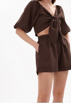 Топ с объемными рукавами, цвет шоколадный