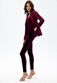 Велюровый костюм – сочетание шика и комфорта. Обыграй верх монохромным жакетом, чтобы получить торжественный образ. В таком наряде – и на праздник, и в офис!