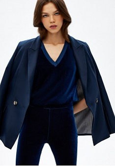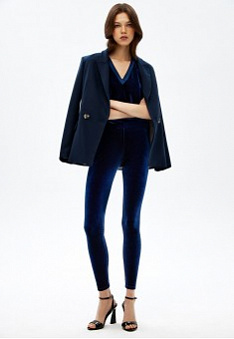 Велюровый костюм – сочетание шика и комфорта. Обыграй верх монохромным жакетом, чтобы получить торжественный образ. В таком наряде – и на праздник, и в офис!