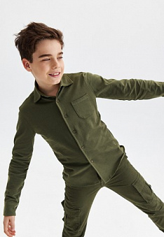 Трикотажная рубашка из пике для мальчика, цвет хаки Фаберлик артикул - СТ_5969, весом 153 гр. цена - 1300 руб., с доставкой в пункты выдачи Faberlic, постаматы Рickpoint и отделения почты России