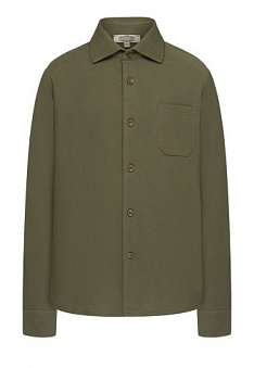 - Прямой силуэт, один нагрудный накладной карман, центральная застежка на пуговицы, отложной воротник на стойке.