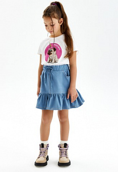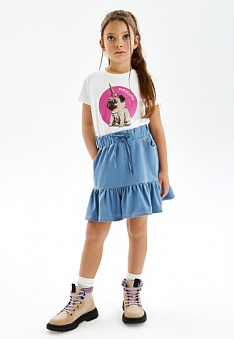 Трикотажная юбка для девочки, цвет синий Фаберлик артикул - СТ_7615, весом 114 гр. цена - 1399 руб., выбрав из 7 размеров (от 104 до 152), с доставкой в пункты выдачи Faberlic, постаматы Рickpoint и отделения почты России
