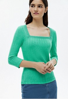Трикотажный джемпер с кружевом, цвет мятный Фаберлик артикул - 533378 - 533385, цена - 1799 руб., выбрав из 3 размеров (от 42 до 50), с доставкой в пункты выдачи Faberlic, постаматы Рickpoint и отделения почты России