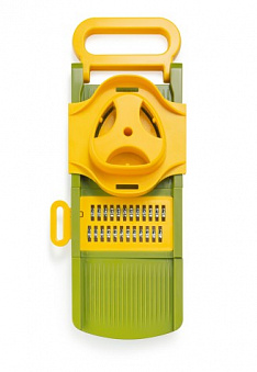 В комплект входят: тёрка, 6 насадок, контейнер для хранения насадок, ручной держатель, инструкция.