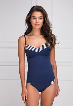 Морской стиль уже несколько сезонов подряд остается на пике популярности. Бело-синяя палитра с красной отделкой в комбинации с классической формой, подчеркивающей совершенства фигуры, – беспроигрышный вариант.