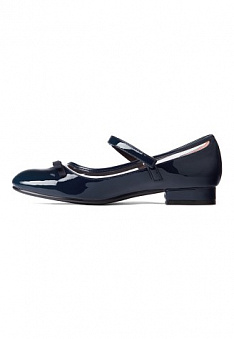Туфли для девочек Isabel – элегантная модель из лаковой экокожи. Украшены бантом. Удобный ремень на липучке хорошо фиксирует ногу.