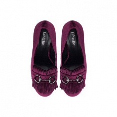 Классические обувные решения в новой коллекции объединились в новые, оригинальные комбинации. Бархатные туфли Violet на высоких каблуках украшает эффектная бахрома и узнаваемая пряжка-трензель. Необычный материал, из которого изготовлена модель, добавляет образу пикантности. Вы всегда будете в центре внимания!