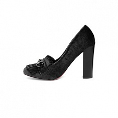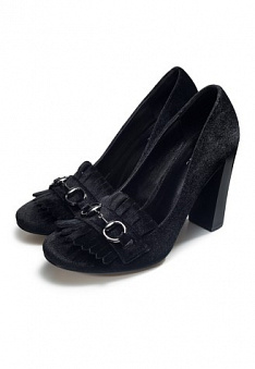 Классические обувные решения в новой коллекции объединились в новые, оригинальные комбинации. Бархатные туфли Violet на высоких каблуках украшает эффектная бахрома и узнаваемая пряжка-трензель. Необычный материал, из которого изготовлена модель, добавляет образу пикантности. Вы всегда будете в центре внимания!