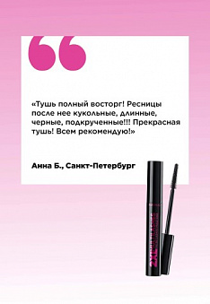 **По результатам потребительского тестирования 96% респондентов отметили устойчивость туши к отпечатыванию и осыпанию до 12 часов.