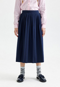 Удлиненная плиссированная юбка для девочки, цвет темно-синий Фаберлик артикул - СТ_2776, весом 239 гр. цена - 299 руб., выбрав из 7 размеров (от 122 до 170), с доставкой в пункты выдачи Faberlic, постаматы Рickpoint и отделения почты России