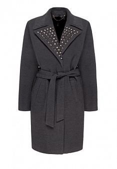Пальто удлиненное с металлизированной отделкой, цвет темно-серый меланж