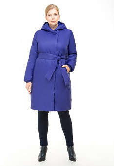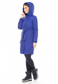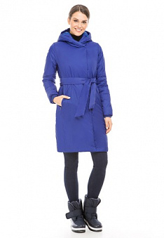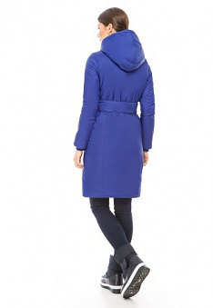 Пальто утепленное с поясом, цвет синий
