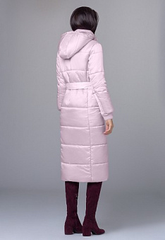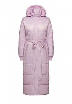 Пальто утеплённое стёганое с поясом, цвет розовый