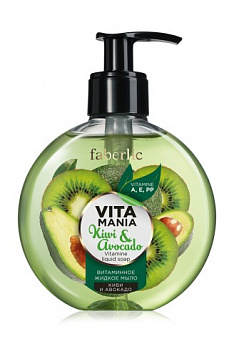 Витаминное жидкое мыло «Киви и авокадо» деликатно очищает кожу, не пересушивая ее, а комплекс витаминов А, Е, РР увлажняет и насыщает кожу необходимыми питательными веществами, дарит непревзойденный комфорт.