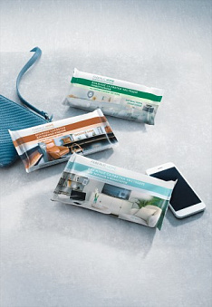 Способ применения: вскройте упаковку, отделив стикер на лицевой части. Извлеките салфетку, плотно запечатав упаковку для предотвращения высыхания остальных салфеток. Протрите загрязненную поверхность и дайте высохнуть.