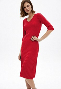 - Платье из вязаного трикотажа в рубчик.