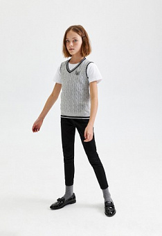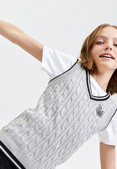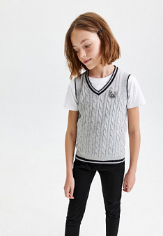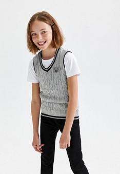 Вязаный жилет для девочки, цвет светло-серый меланж Фаберлик артикул - СТ_2800, цена - 99 руб., выбрав из 7 размеров (от 158 до 170), с доставкой в пункты выдачи Faberlic, постаматы Рickpoint и отделения почты России