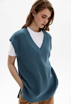 Вязаный жилет, цвет синий