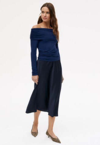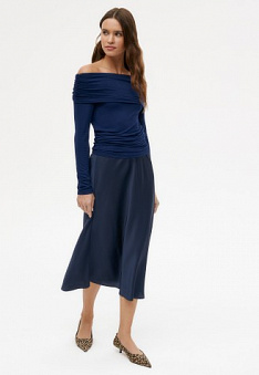 Юбка атласная, цвет темно-синий