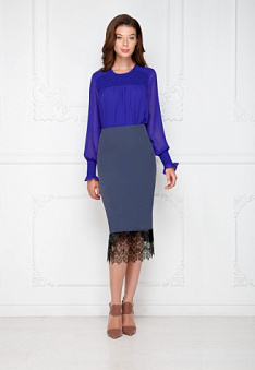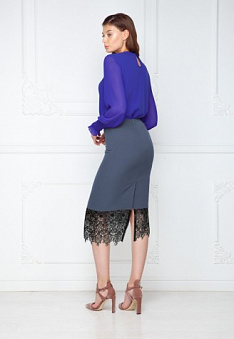 - Юбка прямого силуэта с отделкой из кружева по низу.