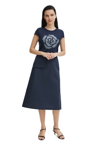 Классическая юбка А-силуэта на резинке − идеальный вариант на каждый день. А акцентный накладной карман, добавленный к базовой модели, делает образ более трендовым и интересным.