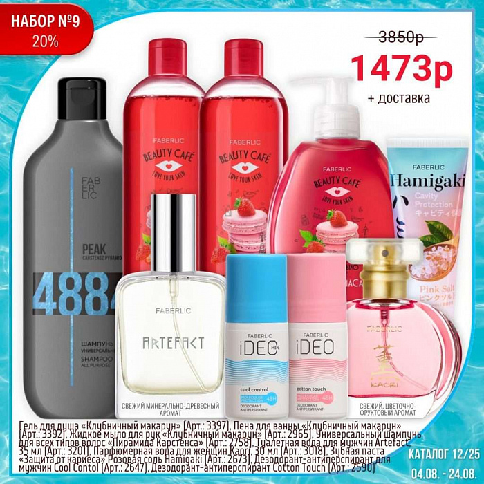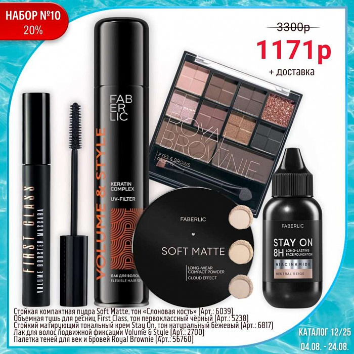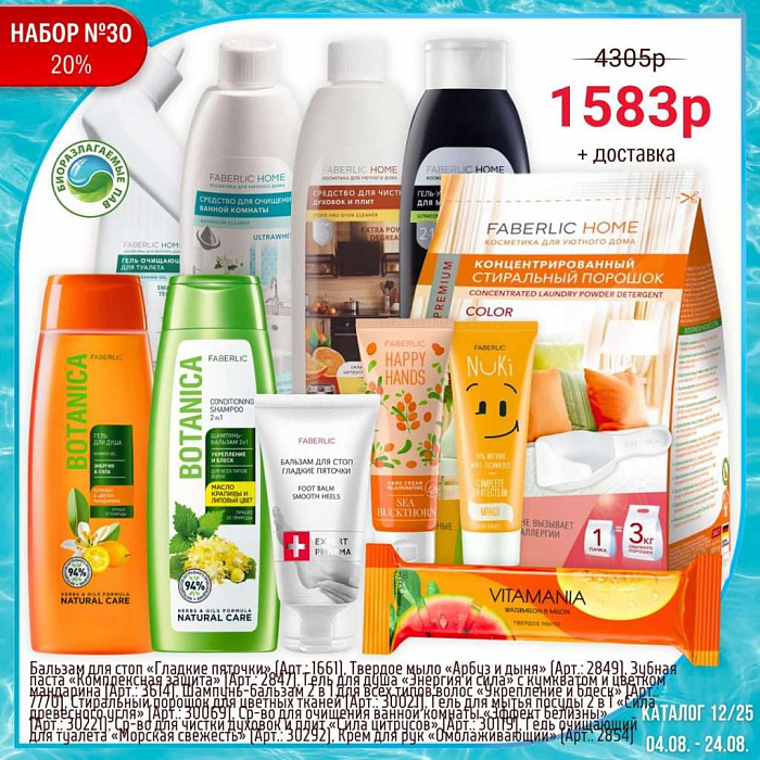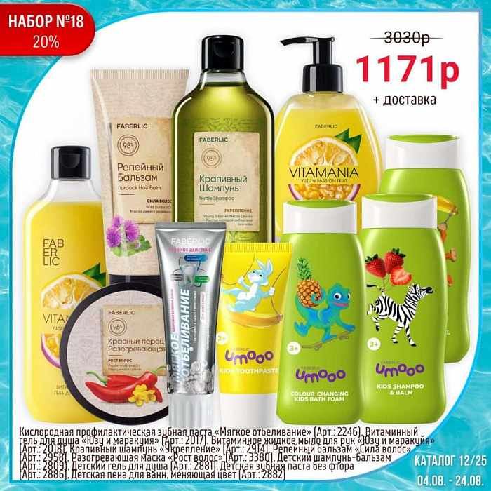 Для оформления заказа, выбирайте понравившийся набор и нажмите кнопку "купить набор", далее выбирайте "Зарегистрироваться и заказать", если это ваш первый заказ в Faberlic или "Войти и заказать", если уже есть кабинет клиента.