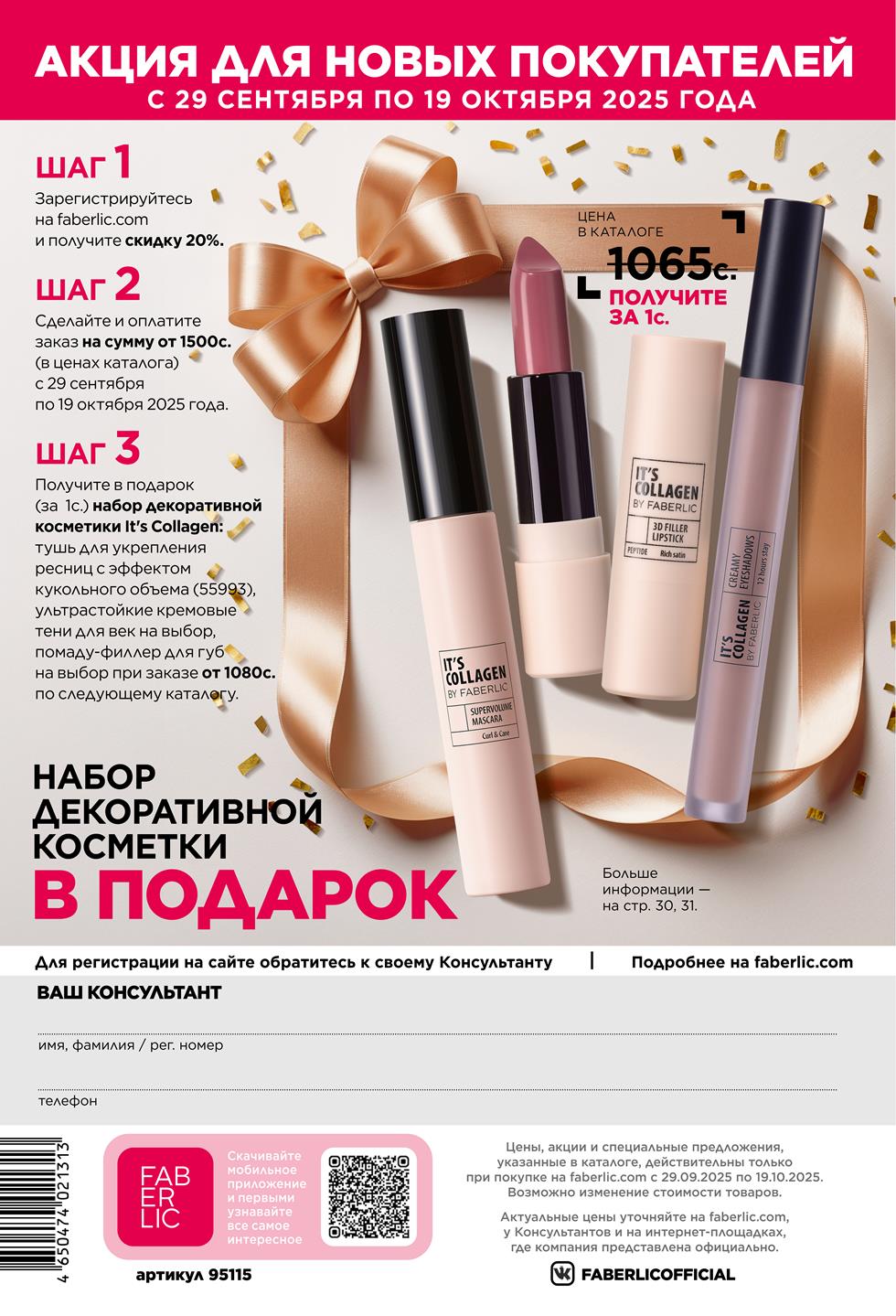 Всем, кто зарегистрируется в Faberlic с 29 сентября по 19 октября 2025 года и совершит покупку в периоде №15/2025, дарим набор декоративной косметики при заказе по следующему каталогу с 20 октября по 9 ноября 2025 года.