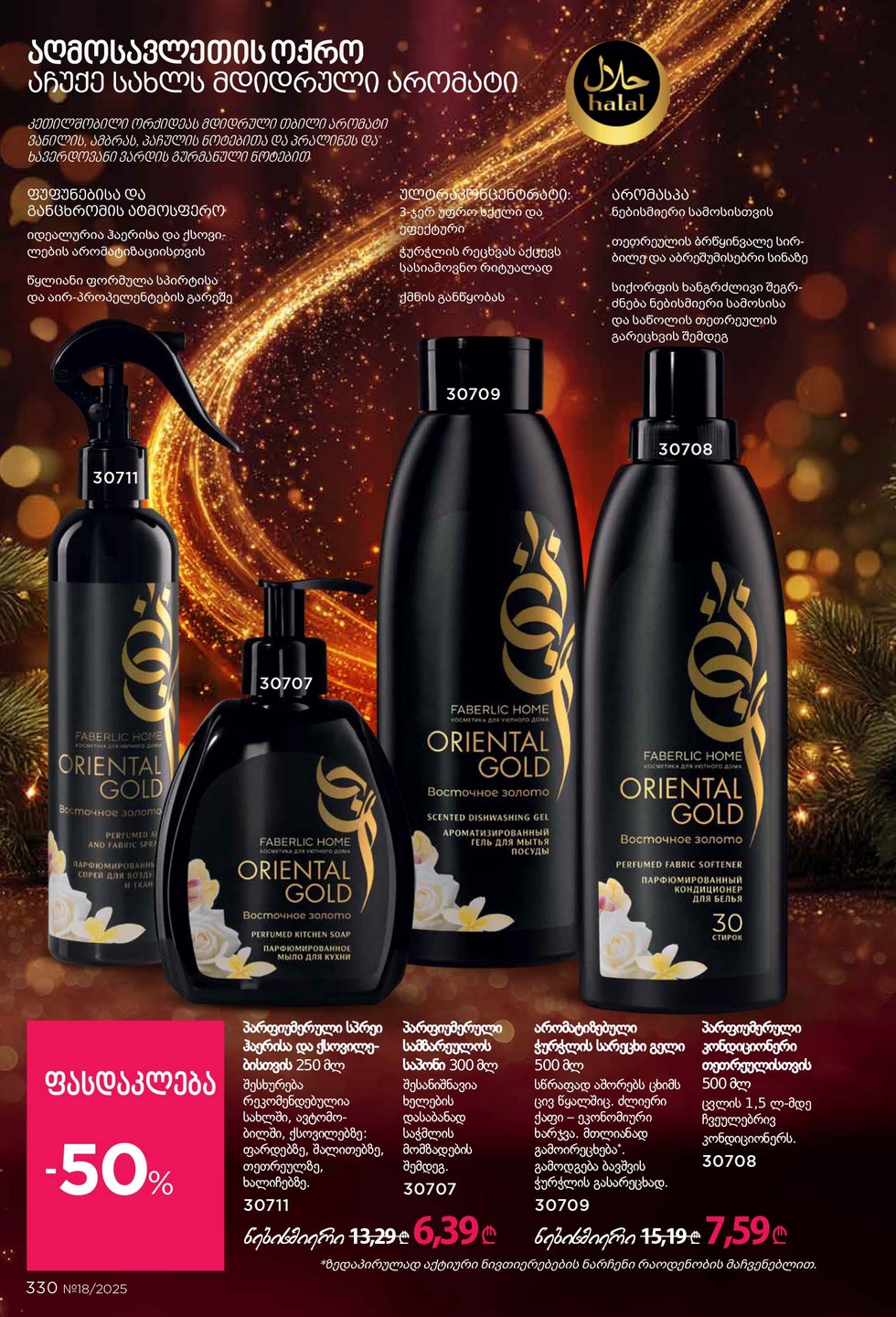 - Любой оттенок лака HALAL COLOR BREATH или TURBO FAST DRY со скидкой 55% всего за 5,89 ₾ при покупке по каталогу на сумму от 18,99 ₾. Товары-участники: 71069-71090, 71102.