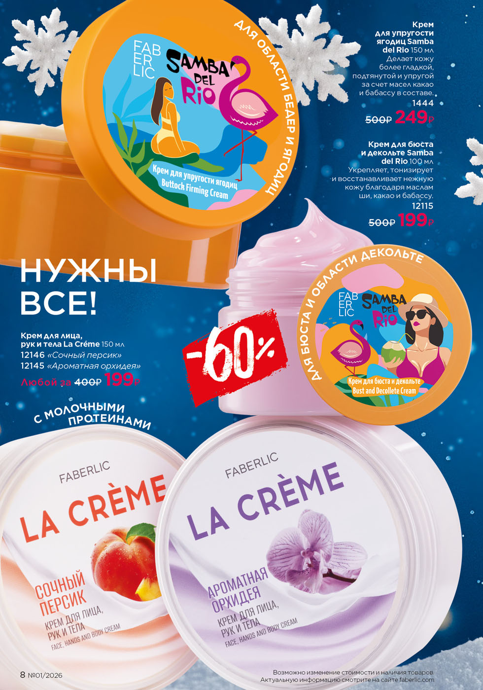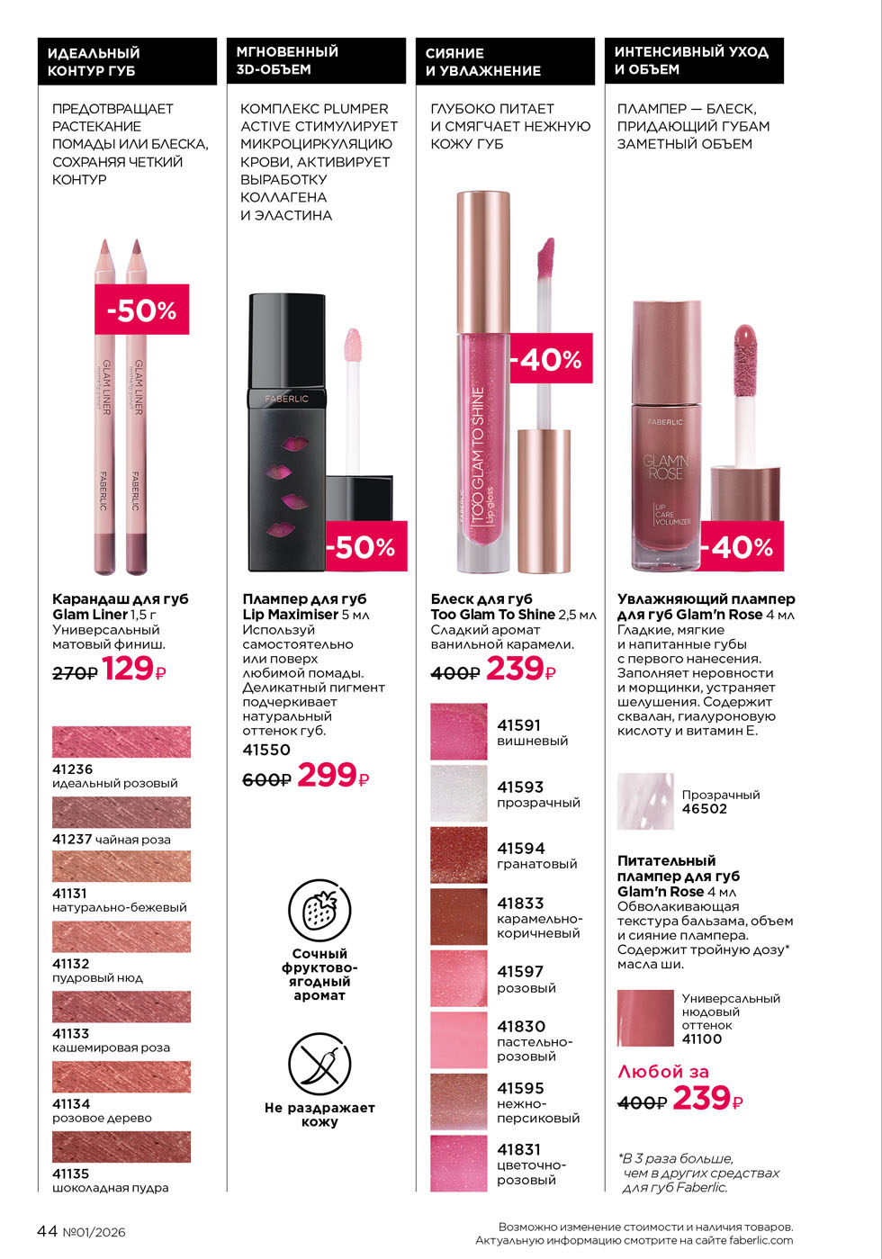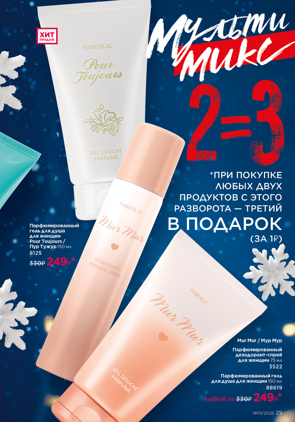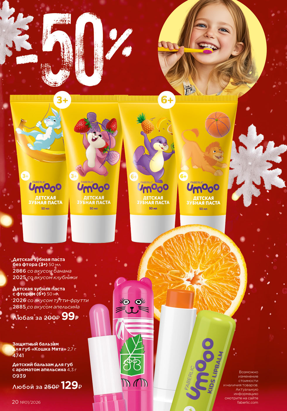 Посмотри каталог фаберлик Туркменистан 1 2026 года в режиме онлайн, без регистрации и рекламы, цены указаны в ман., действует 3 недели с 5 января 2026 по 25 января 2026. При просмотре 1 каталога Faberlic на нашем сайте, обрати внимание на выгодные акции, подарки для новичков и новинки продукции данного каталога, они вынесены в отдельные блоки для удобства просмотра. Тип: новый (следующий) каталог