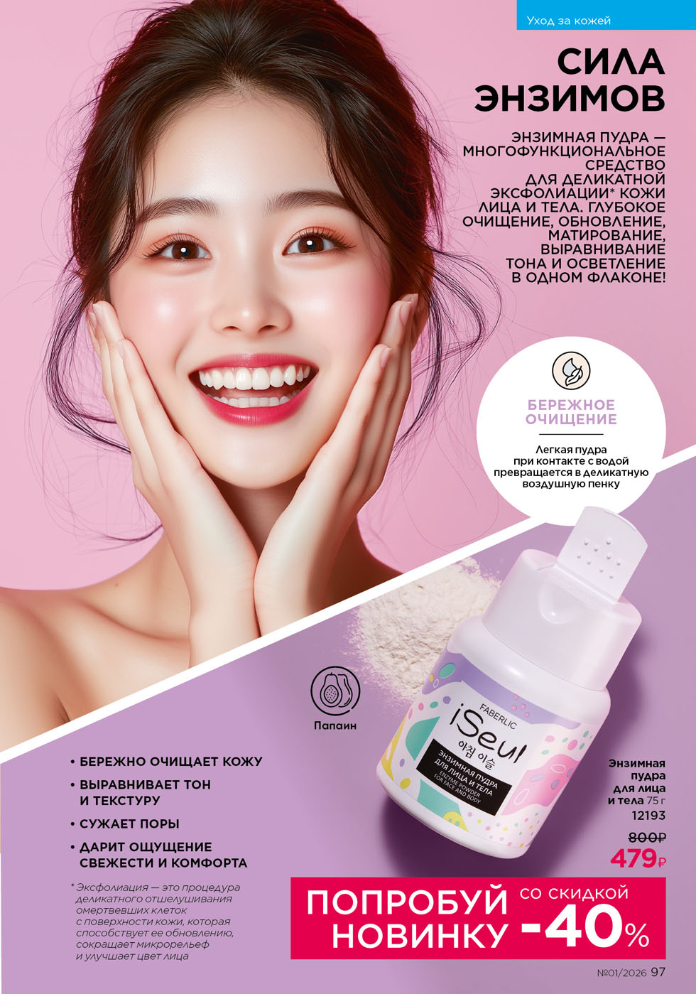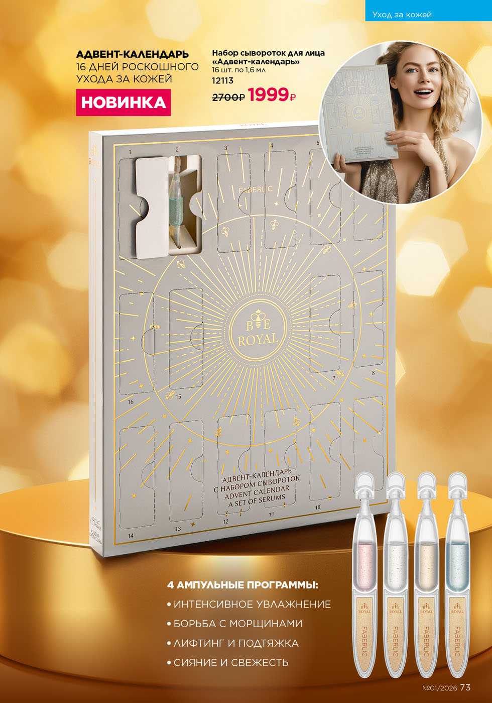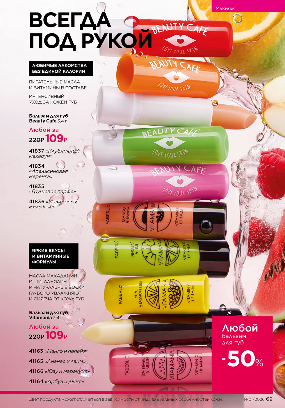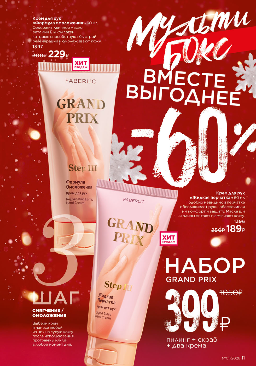 Посмотри каталог фаберлик Туркменистан 1 2026 года в режиме онлайн, без регистрации и рекламы, цены указаны в ман., действует 3 недели с 5 января 2026 по 25 января 2026. При просмотре 1 каталога Faberlic на нашем сайте, обрати внимание на выгодные акции, подарки для новичков и новинки продукции данного каталога, они вынесены в отдельные блоки для удобства просмотра. Тип: новый (следующий) каталог